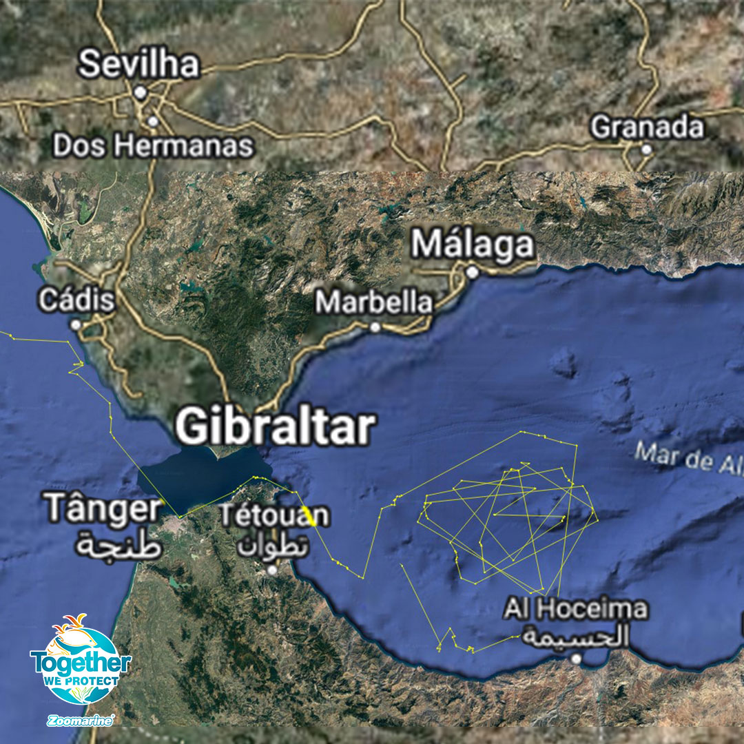 The numbers speak for themselves: 9,203 km over 13 months of monitoring. Six days after it’s release, it had already crossed the Strait of Gibraltar and entered the Mediterranean. Then came wide loops in the Alboran Sea (likely feeding), a journey along the coasts of Morocco and Algeria, passage by the Balearic Islands, a sweep around Sardinia, and finally… settlement in the Tyrrhenian Sea, between Sicily and Calabria.